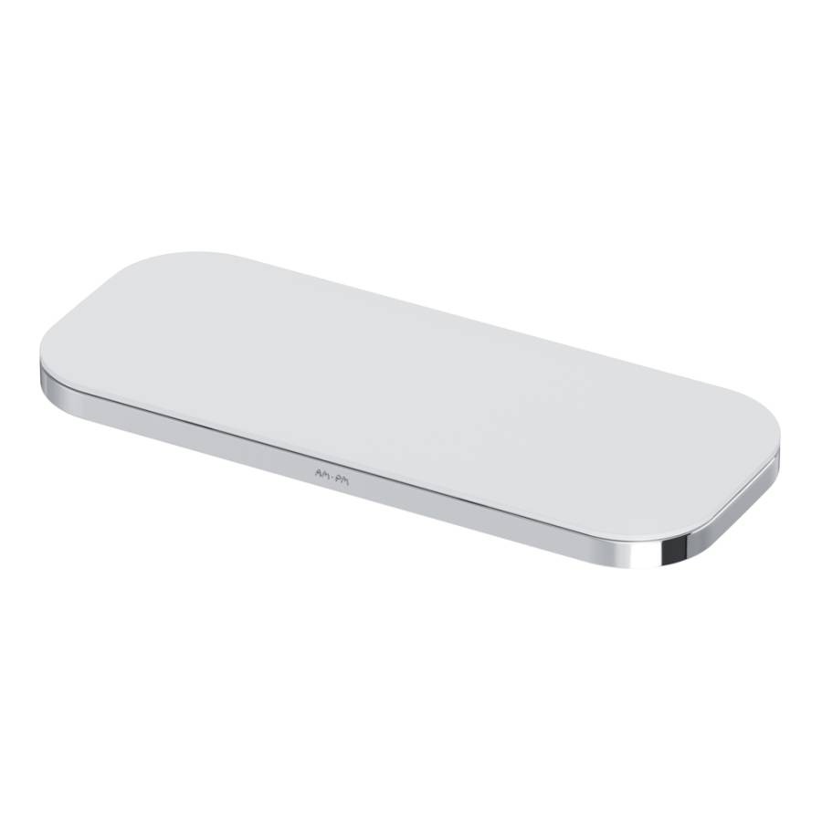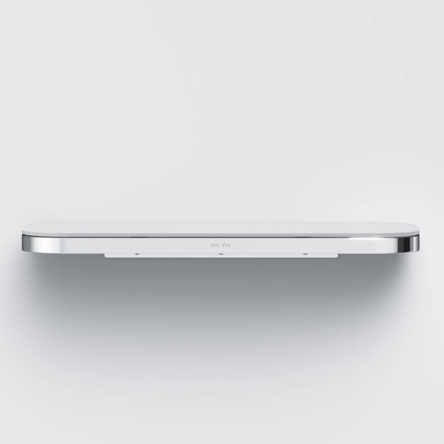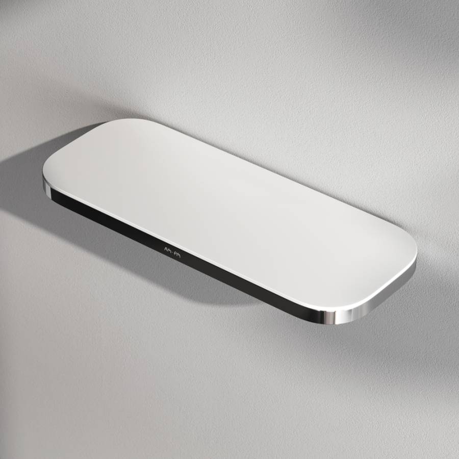 Полка выполнена из сплава металлов и экологичного пластика элегантного белого цвета.