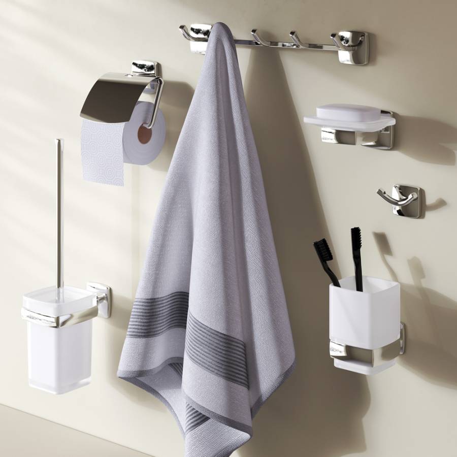 Занимая минимум места в пространстве аксессуары Gem помогут рационально организовать место для хранения и станут стильными акцентами в интерьере. В комплекте: стеклянная мыльница стеклянный стакан набор крючков для полотенец двойной крючок для полотенец держатель для туалетной бумаги с крышкой стойка с туалетной щеткой._x000D_