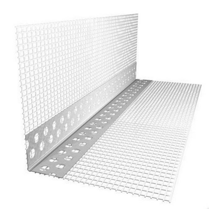 Представляет собой пластиковый перфорированный уголок со стеклосеткой длиной 2,5 метра, шириной 15 сантиметров и высотой 10 сантиметров.