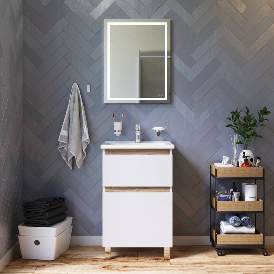 Большое зеркало с LED-подсветкой идеально для нанесения макияжа. Механический скрытый включатель сохраняет поверхность зеркала чистой.