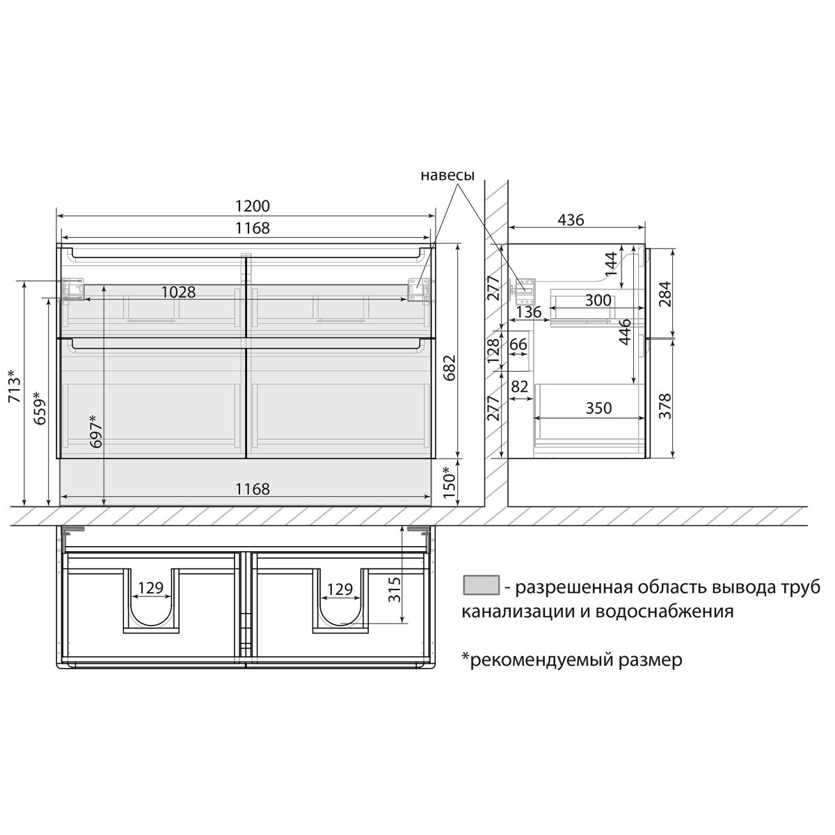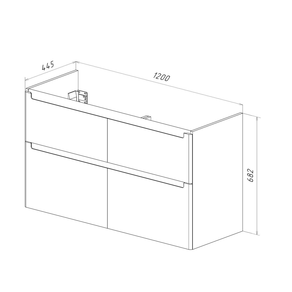 •Габариты без раковины (ШГВ): 1200х445х682 мм;
