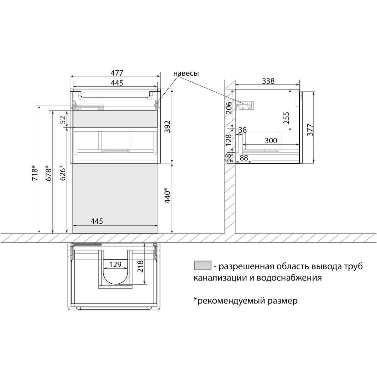 •Габариты без раковины (ШГВ): 477х354х392 мм;