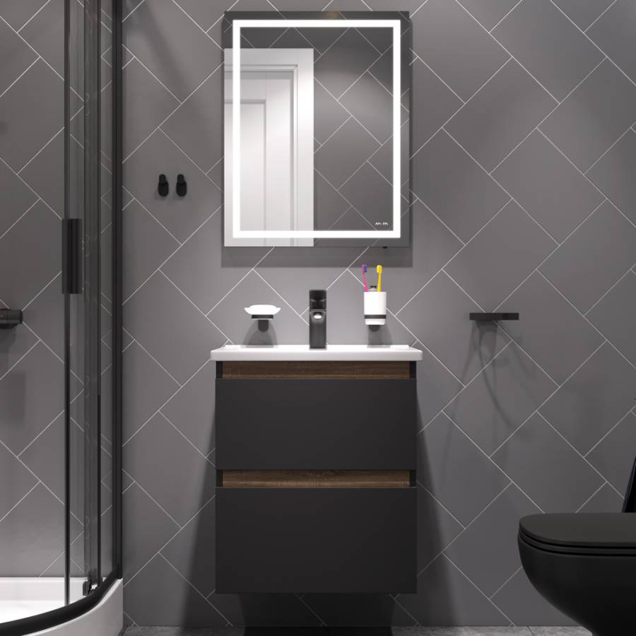 Комплект X-Joy – это самое эстетичное сочетание цветов и фактур: черные матовые фасады дополнены отделкой с фактурой под темное дерево. Смеситель и аксессуары идеально впишутся в современную ванную комнату и будут радовать глаз каждый день.