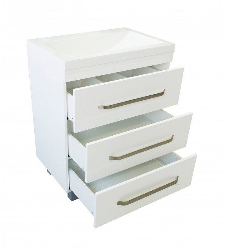 Мебель выполнена из влагостойкого ЛДСП и качественного MDF с использованием эмали RENNER (Италия). Ящики снабжены системой плавного закрывания. Для мебели используется фурнитура BLUM (Австрия).