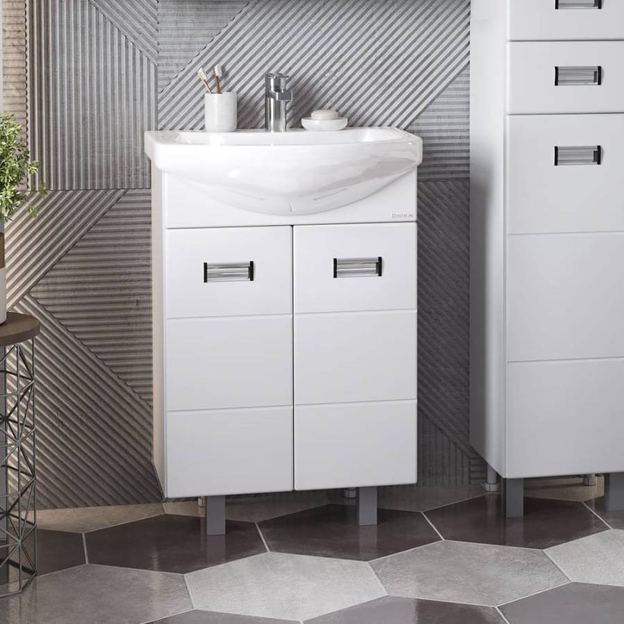 Размеры тумбы без учета раковины и ножек: 59x31x68 см.