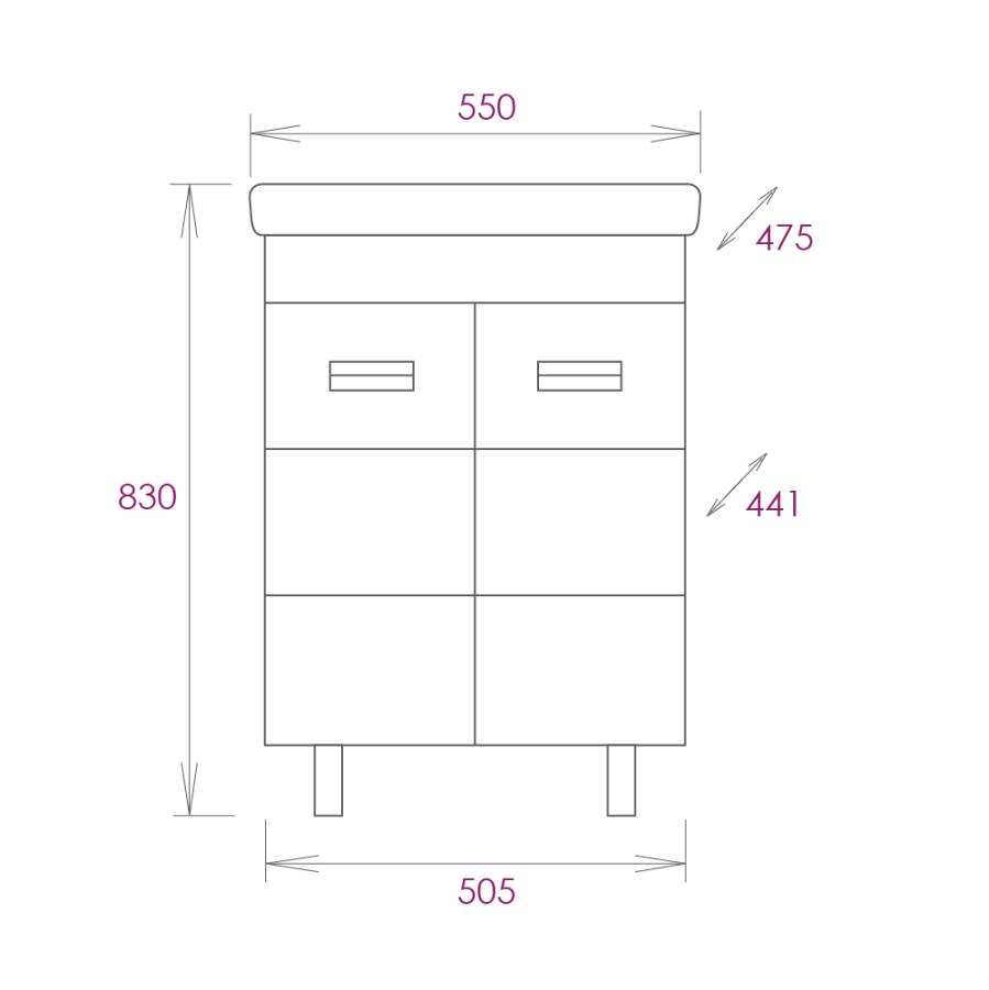Размеры тумбы без учета раковины и ножек: 50x44x67 см.