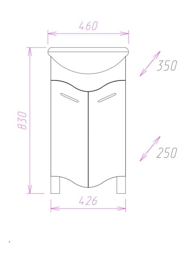 Размеры тумбы без учета раковины и ножек 43х25х75 см.