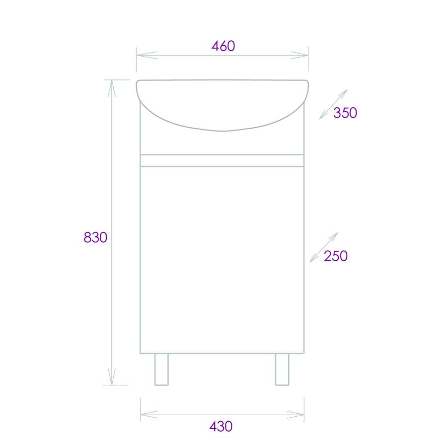 Размеры тумбы без учета раковины и ножек 43х25х68см.