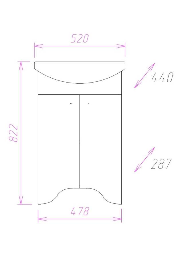 Размеры тумбы без учета раковины 48x29x78 cм.