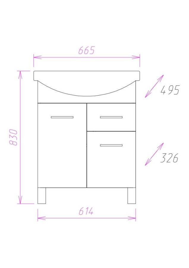 Размеры тумбы без учета раковины и ножек 61x33x68 cм.