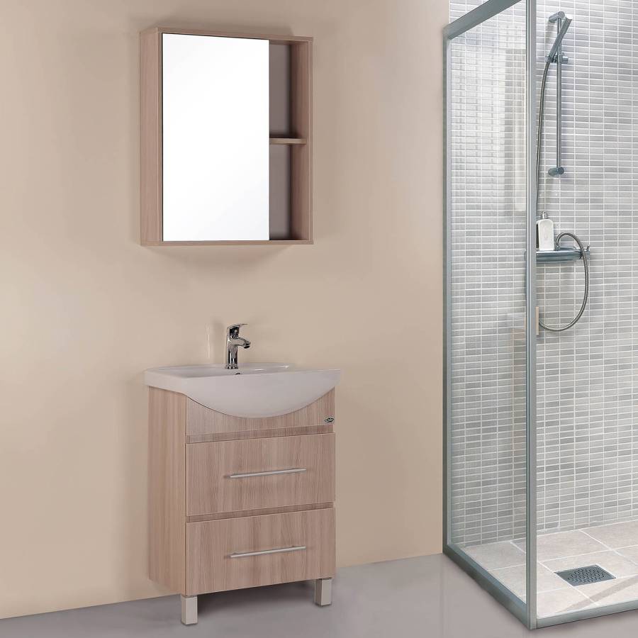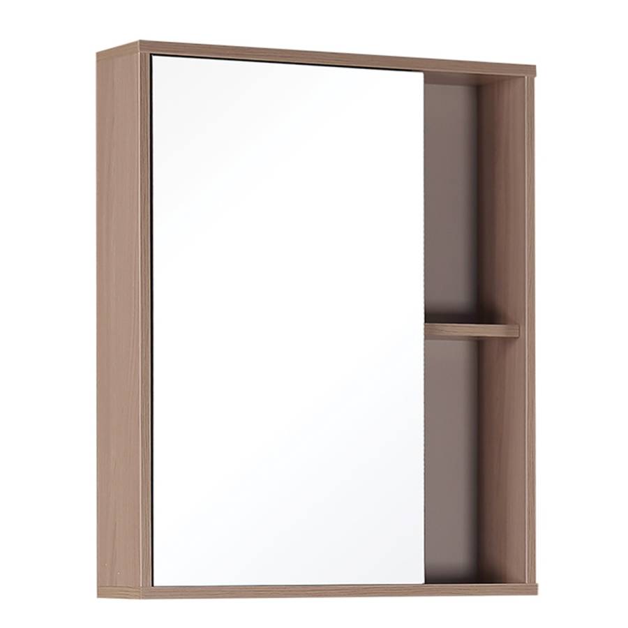 Шкаф максимально удобен в использовании: пространство за зеркальной дверцей с механизмом плавного закрывания, разделенное двумя горизонтальными полочками, позволяет компактно разместить бытовые принадлежности. 2 открытые полочки созданы специально для хранения часто используемых вещей.