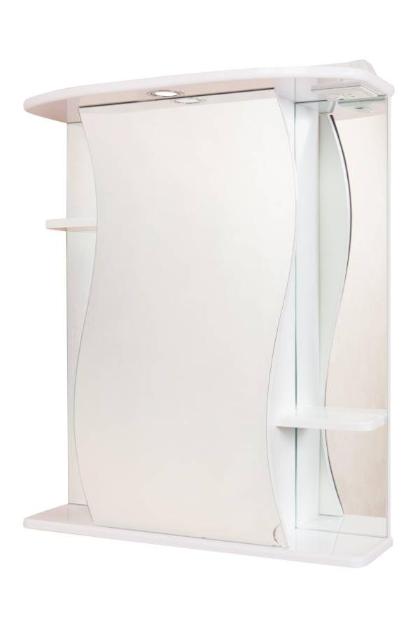 Пространство за распашной зеркальной дверцей с механизмом плавного закрывания станет удобным местом для хранения различных бытовых принадлежностей. 2 открытые полочки, распложенные на разной высоте, созданы специально для хранения часто используемых вещей.