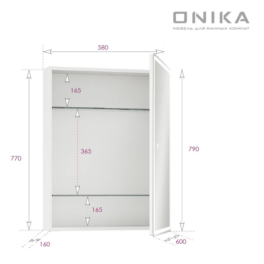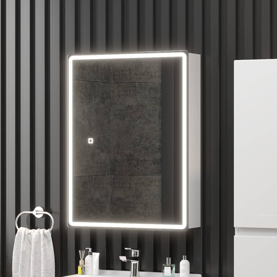 Яркость LED-подсветки регулируется при помощи встроенного диммера и сенсорной кнопки на поверхности зеркала.