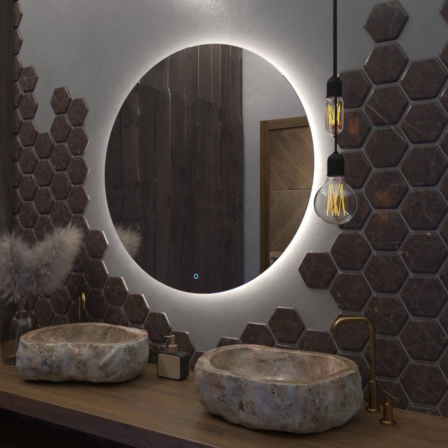 Яркость LED-подсветки регулируется при помощи встроенного диммера и сенсорной кнопки на поверхности зеркала.