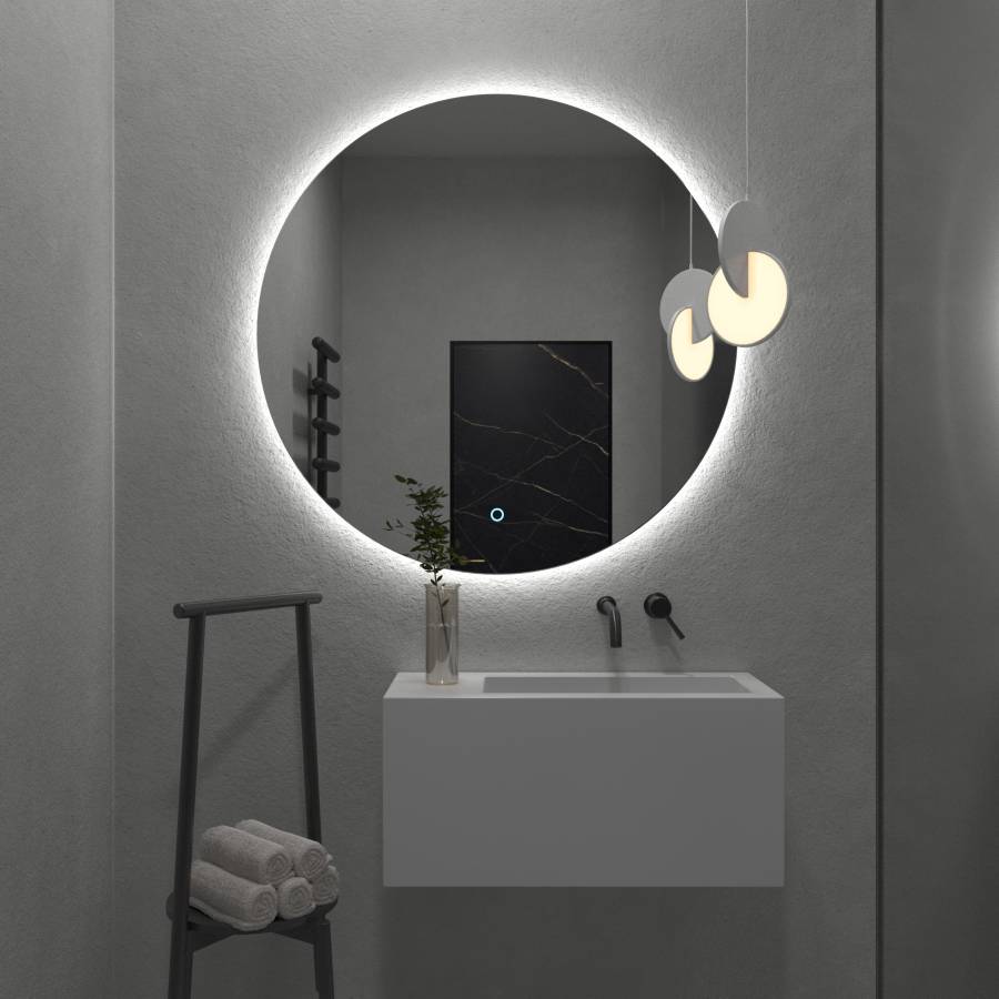 Яркость LED-подсветки регулируется при помощи встроенного диммера и сенсорной кнопки на поверхности зеркала.