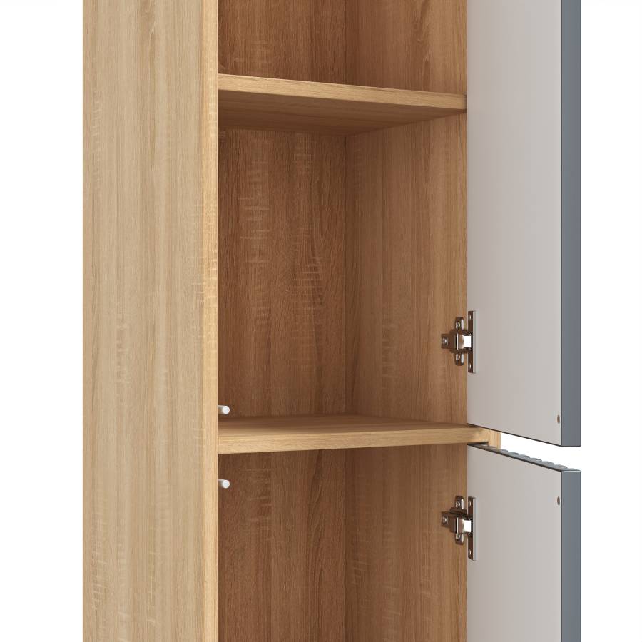 Рифленый серый матовый фасад с покрытием SoftTouch и корпус цвета дуба с роскошной текстурой подчеркнет изысканный вкус владельца и станет центральным элементом декора.