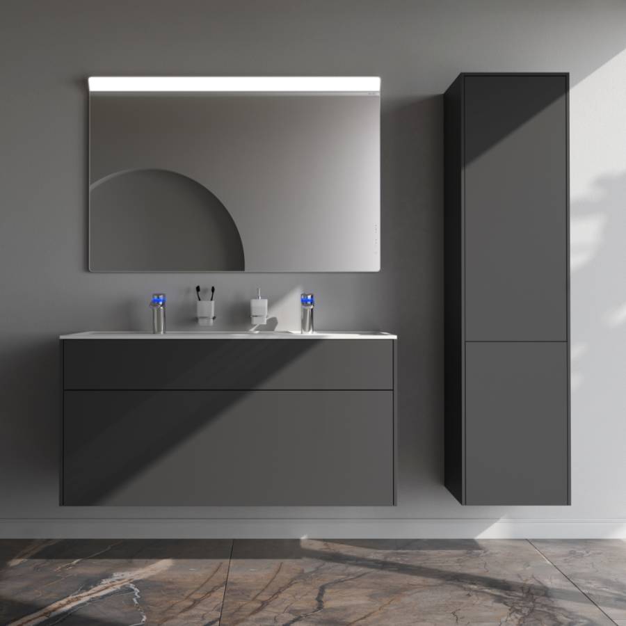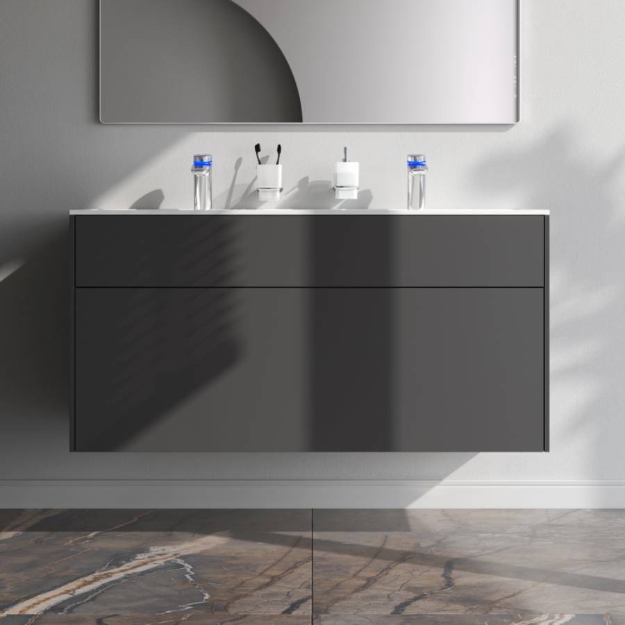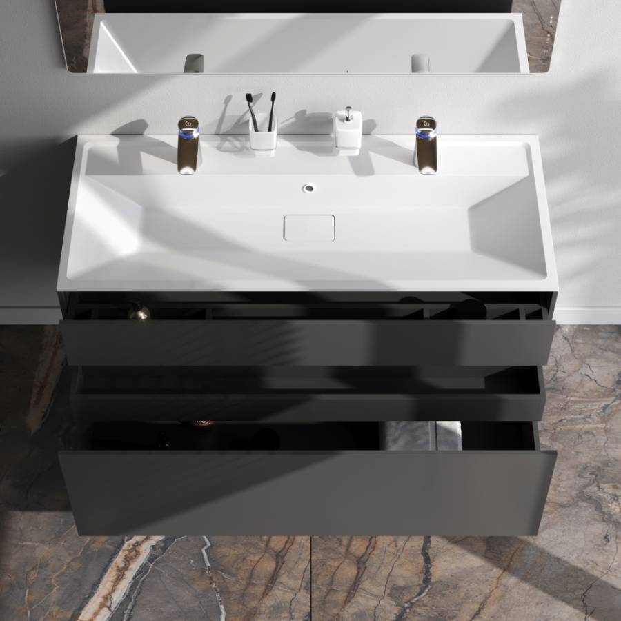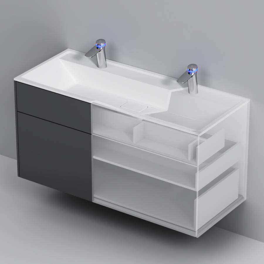 Ультратонкая раковина эргономичной формы с покрытием из мрамора идеально сочетается с мебельной базой _x000D_