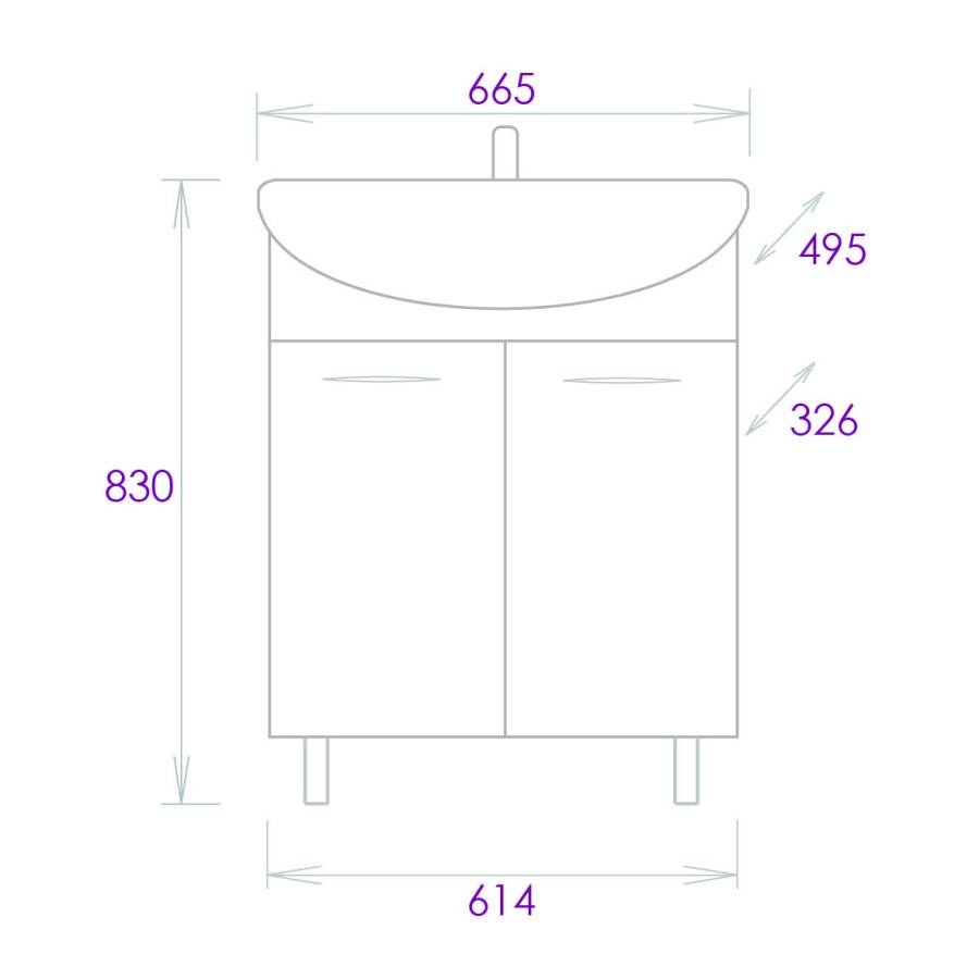 Размеры тумбы без учета раковины и ножек 61x33x68 cм.