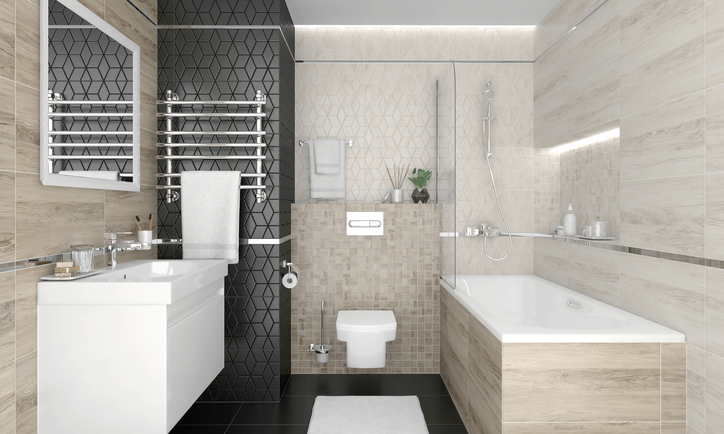 📝Просто оставить заявку в один клик. Все остальное мы сделаем за Вас! 🎨Мы нарисуем Дизайн-проект с 3D-визуализацией с раскладкой плитки и сантехникой |