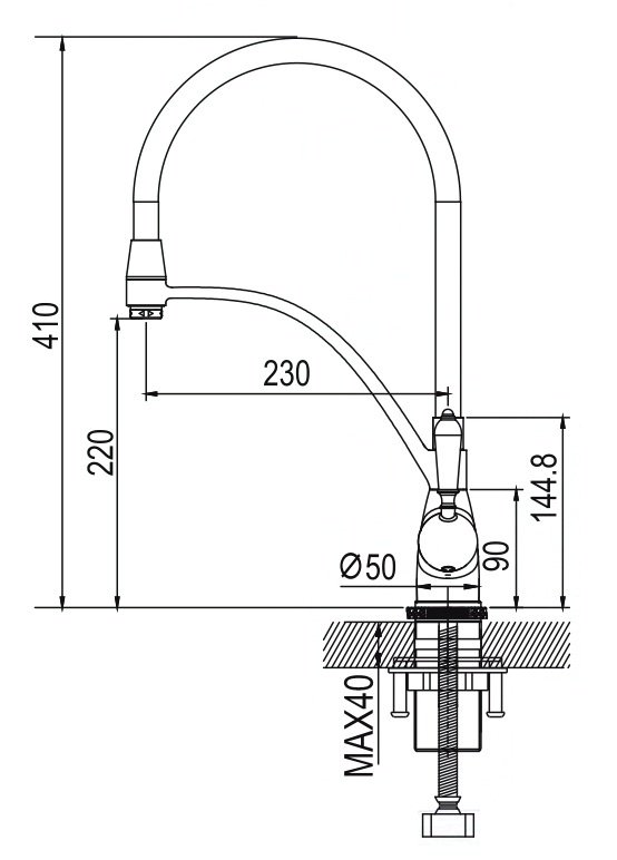 Аэратор, гибкий излив, душевая насадка |