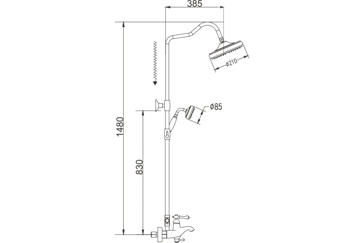 Смеситель, душевая стойка, верхний душ, душевая лейка, душевой шланг, держатель для душевой лейки, настенный держатель, отражатели, эксцентрики |