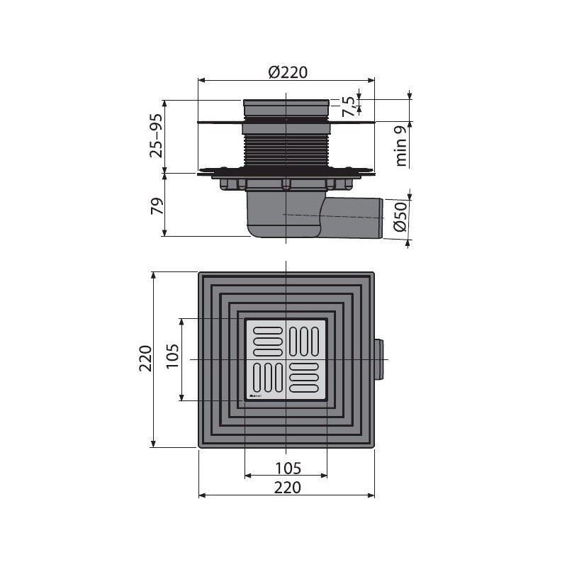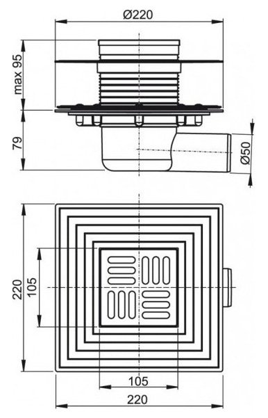 Корпус сливного трапа с боковым подключением к стоку Ø50 мм; Горловина сливного трапа 105×105 мм; Решетка из нержавеющей стали; Гидрозатвор – комбинированный SMART; Фланец из нержавеющей стали + монтажный набор; Воротник с 2-х уровневой изоляцией, внутреннее отверстие Ø105 мм; Комплект прокладок. |