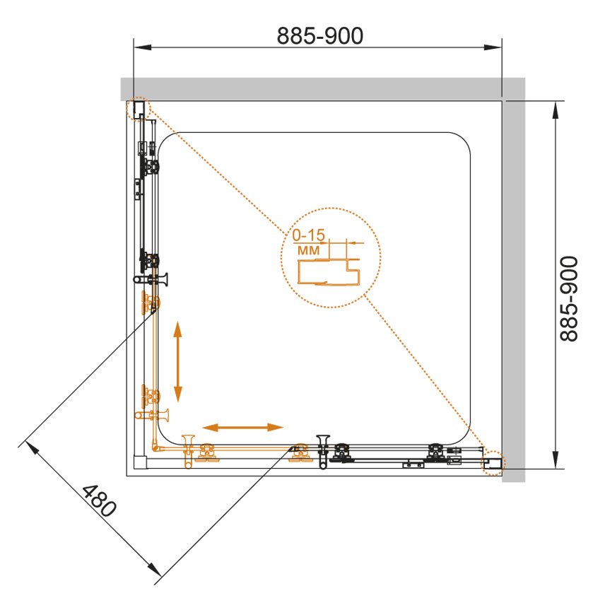 Напольный, на поддон, пристенный в угол |