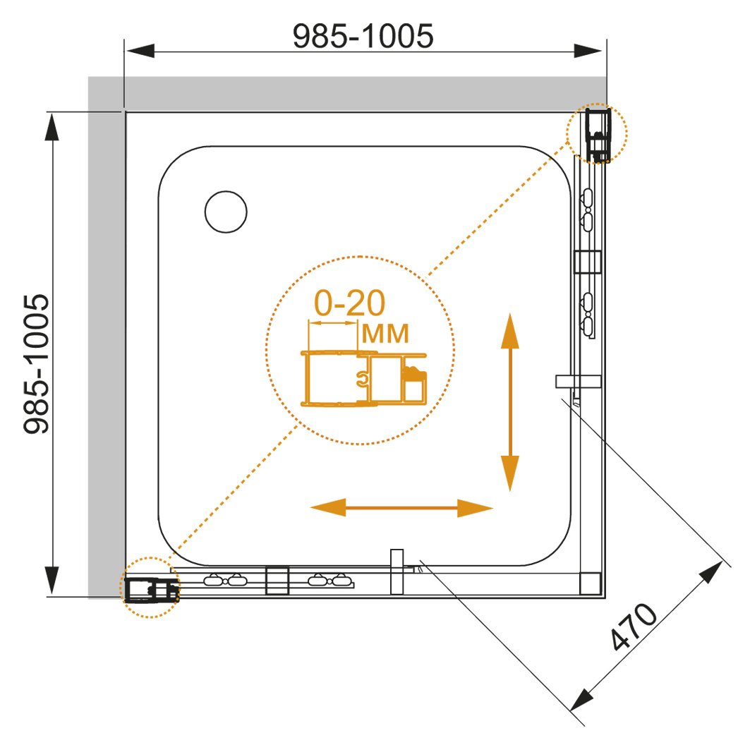 Напольный, на поддон, пристенный в угол |