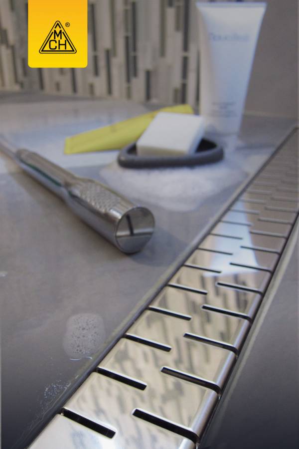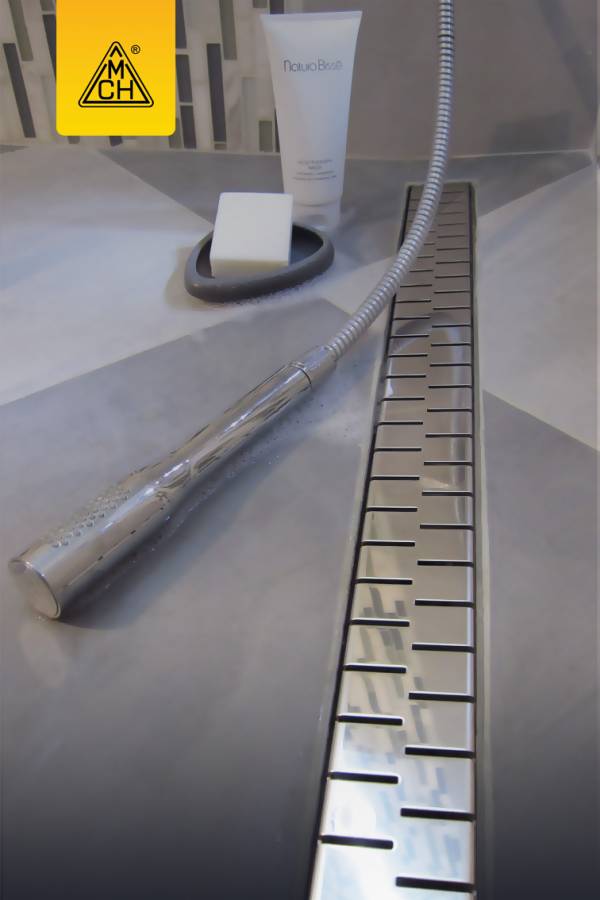 Нижняя часть изготовлена из полипропилена, рамка желоба и решетка - из нержавеющей стали DIN 1.4301 AISI 304, с возможностью