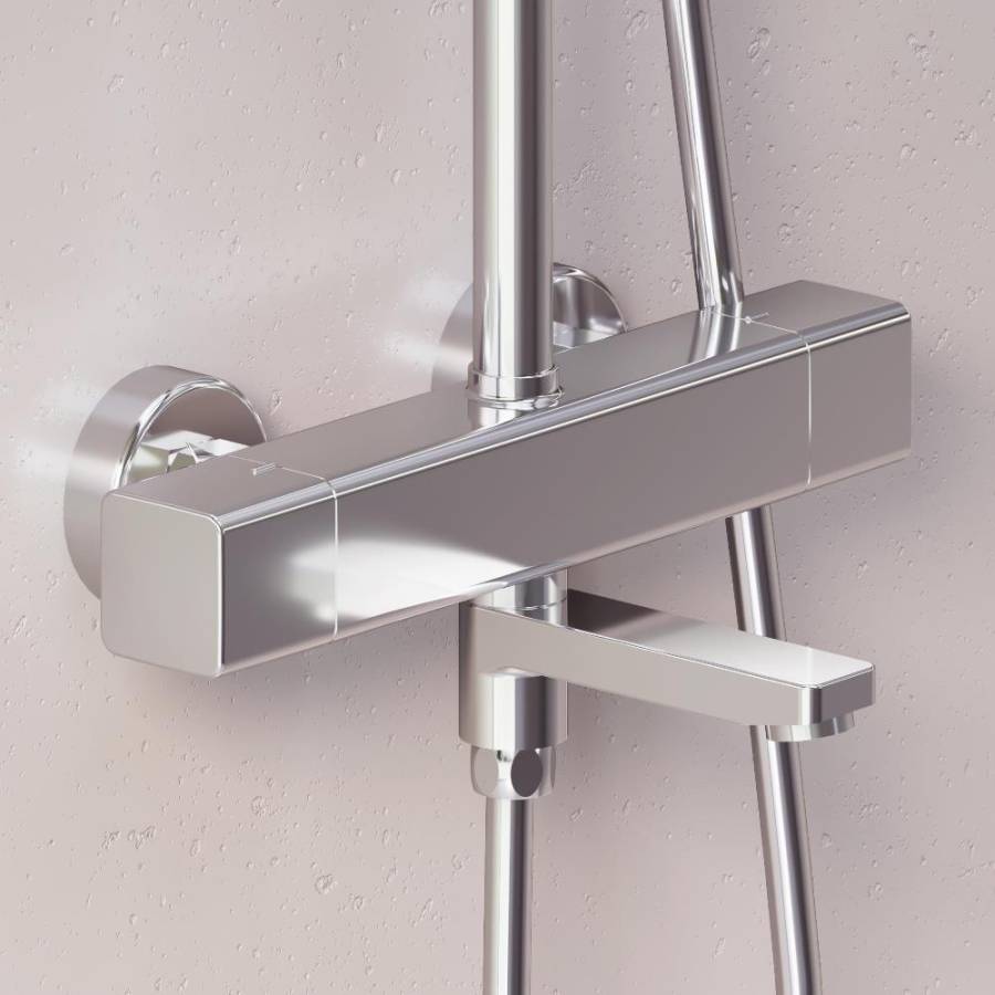Специальное PVD-покрытие гарантирует чрезвычайную прочность душевой системы надежно защищая Хромовое покрытие от механических повреждений коррозии и потери цвета.