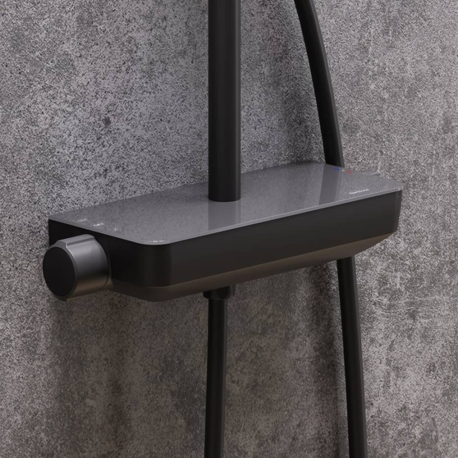 Максимальная безопасность: термостатический картридж 35 мм обеспечивает точную настройку температуры и напора воды. Выставляйте комфортные для вас параметры легким поворотом правой ручки смесителя. Непревзойдённый комфорт и удобство: смеситель выполнен в виде компактной полочки из закаленного стекла где вы можете хранить все необходимые вещи.