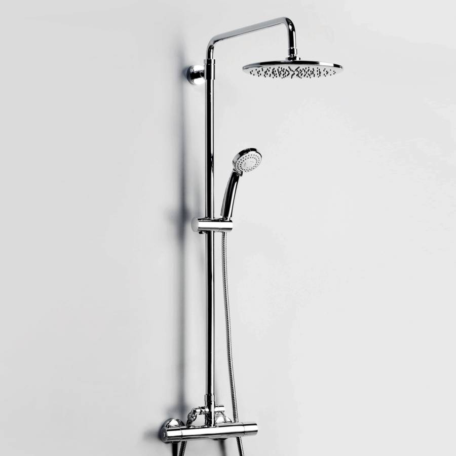 Душевая насадка 250 мм, 135 форсунок, ABS-пластик, Стойка для душа, 25мм регулируемая по высоте, Лейка 3-функциональная с системой защиты от известковых отложений, Шланг металлический 1500 мм, подключение к лейке, Термостатический смеситель, Термостатический картридж Vernet (Франция), Обратные клапаны Neoperl (Германия), Поворотный уголок на шланг для душа, Эксцентрики со встроенным фильтром, Регулируемый держатель лейки, Набор для монтажа |
