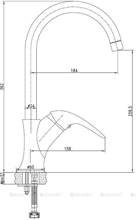 Смеситель; Комплект гибкой подводки; Комплект креплений; Аэратор |