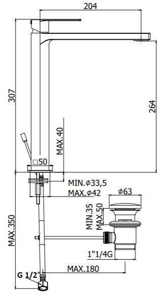 Длина излива см./мм.