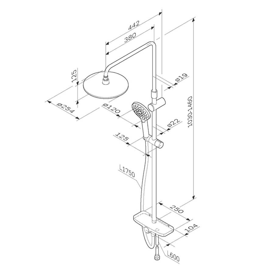 Премиальные размеры и продуманные детали: увеличенный диаметр душевых леек (верхний душ 254 мм и ручной душ 120 мм) позволит ощутить преимущества тропического душа тогДа как увеличенная длина шланга 1750 мм обеспечит свободу движений во время принятия душа. Телескопическая поворотная штанга регулируется по высоте в диапазоне от 1030 до 1460 мм обеспечивая комфорт для людей любого роста а шаровой шарнир в держателе верхнего душа позволяет регулировать угол его наклона.