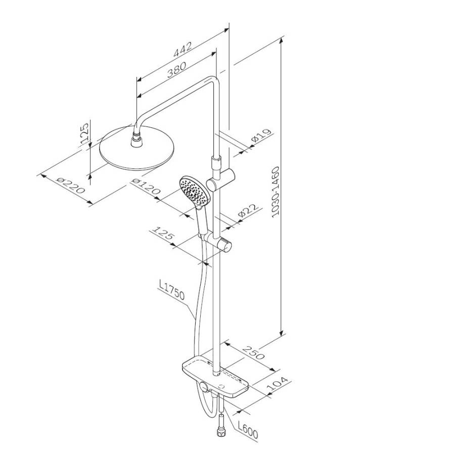 Премиальные размеры и продуманные детали: увеличенный диаметр душевых леек (верхний душ 220 мм и ручной душ 120 мм) позволит ощутить преимущества тропического душа тогДа как увеличенная длина шланга 1750 мм обеспечит свободу движений во время принятия душа. Телескопическая поворотная штанга регулируется по высоте в диапазоне от 1030 до 1460 мм обеспечивая комфорт для людей любого роста а шаровой шарнир в держателе верхнего душа позволяет регулировать угол его наклона.