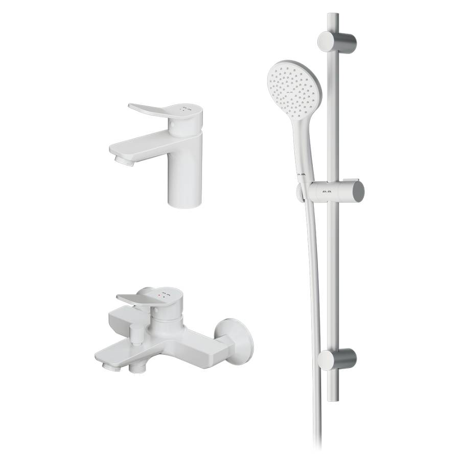 3 в 1: набор из двух смесителей и душевого комплекта гармонично дополняют друг друга как функционально так и эстетически.