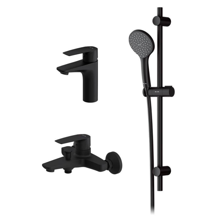 3 в 1: набор из двух смесителей и душевого комплекта гармонично дополняют друг друга как функционально так и эстетически. Брутальный и трендовый дизайн смесителей: уникальная шестигранная форма выделяется среди однообразных станДартных смесителей в доступном ценовом сегменте.