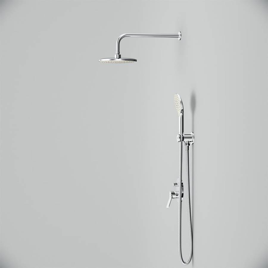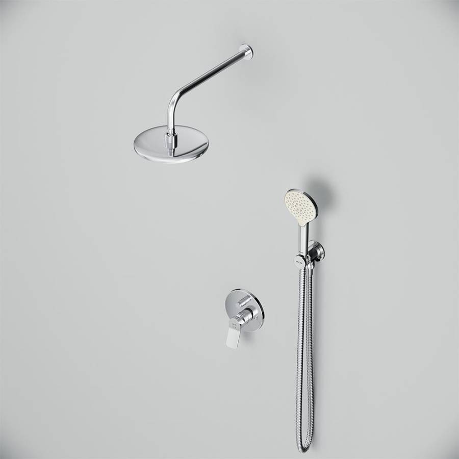 Верхний душ, Держатель для душа, Душевая лейка, Душевой шланг, Кронштейн для верхнего душа, Скрытая монтажная часть, Смеситель, Шланговое подключение |