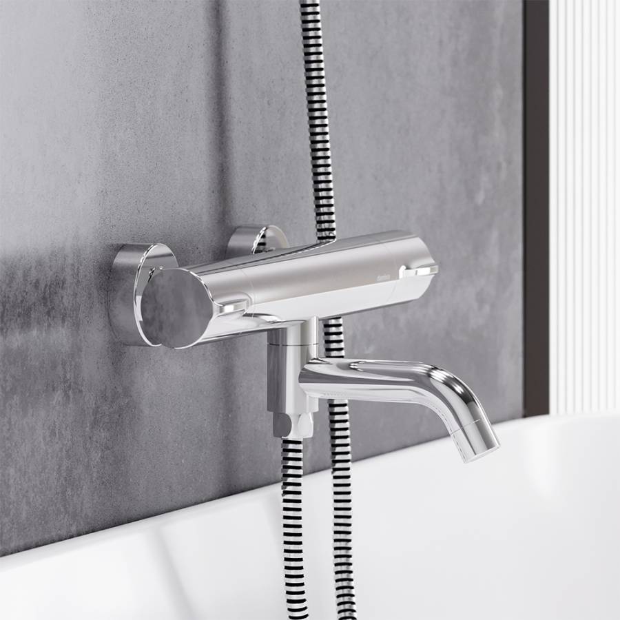 Максимальная безопасность: термостатический картридж 35мм обеспечивает точную настройку температуры и напора воды. Специальная кнопка-предохранитель не позволяет случайно повысить температуру воды. Выставляйте комфортные для вас параметры легким поворотом правой ручки смесителя. Переключайте потоки воды между лейкой и изливом - поворотом излива.
