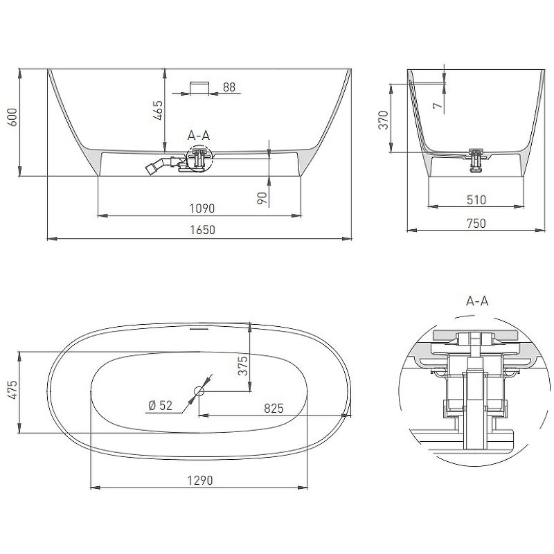 Интегрированный слив-перелив, сифон, донный клапан "Up&Down" белый |