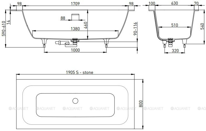 Ванна, регулируемые ножки до 2 см, интегрироВанный слив перелив, донный клапан цвет белый |