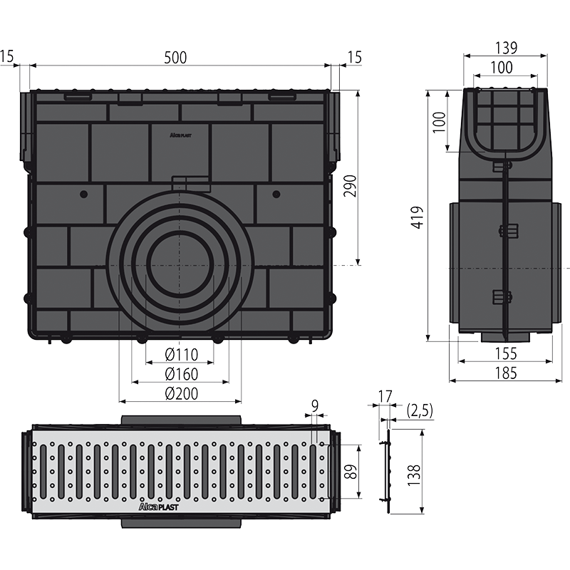 Корпус дренажного канала; Оцинкованная ревизионная надставка |