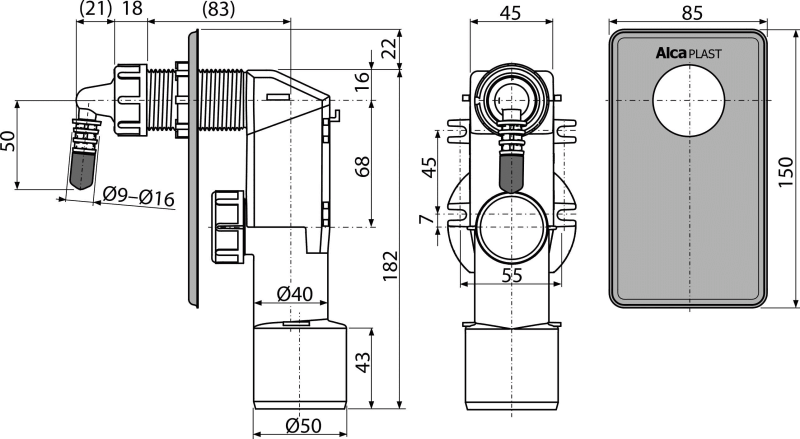 Корпус сифона с комбинированным гидрозатвором; Панель из нержавеющей стали; Колено. |