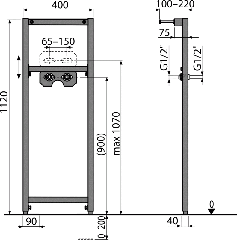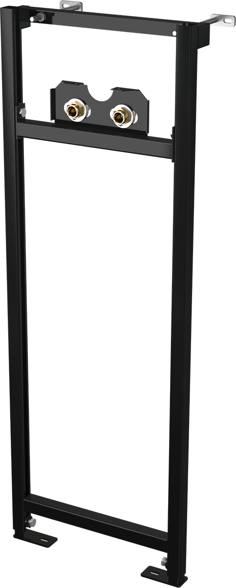 Рама; Монтажный комплект: винт Ø8×60 – 4 шт., дюбель Ø12 – 4 шт.; Резьбовое соединение для подключения воды: G1/2"–G1/2". |