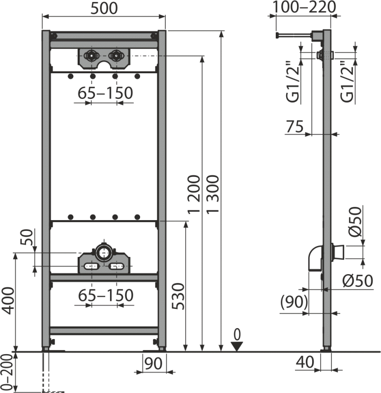 Рама - 1 шт. Монтажный набор - 1 шт. Резьбовое соединение для подключения воды - 1 шт. Стоковое колено HT50 с прокладкой - 1 шт. Инструкция - 1 шт. |