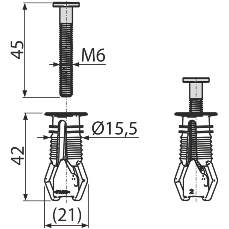 Болт из нержавеющей стали 2 шт.Дюбель 2 шт. |