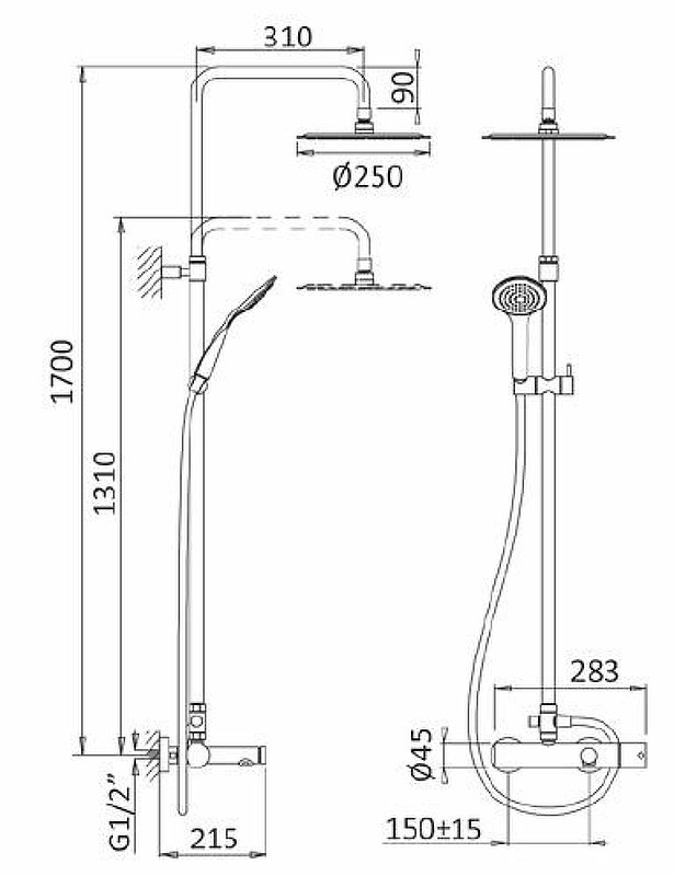 Ручной душ, верхний душ, смеситель |