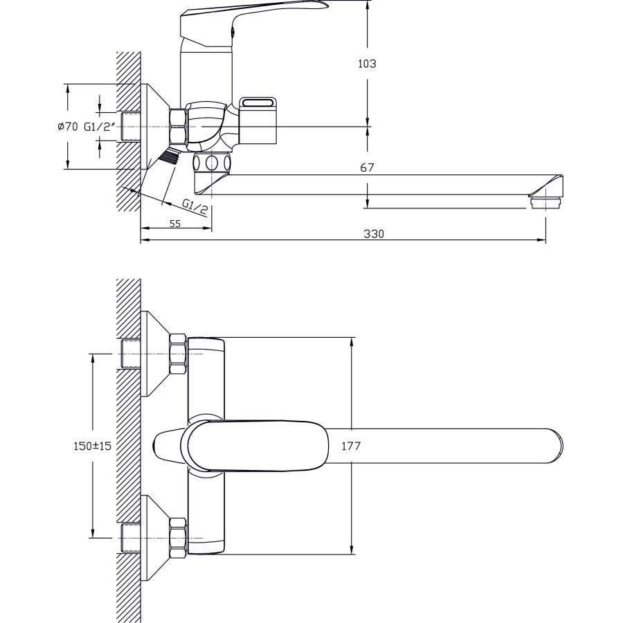 В смеситель установлен картридж D-35 с керамическими пластинами, а также дивертор (переключатель ) с керамическими пластинами. Пластиковый аэратор с нержавеющим корпусом.