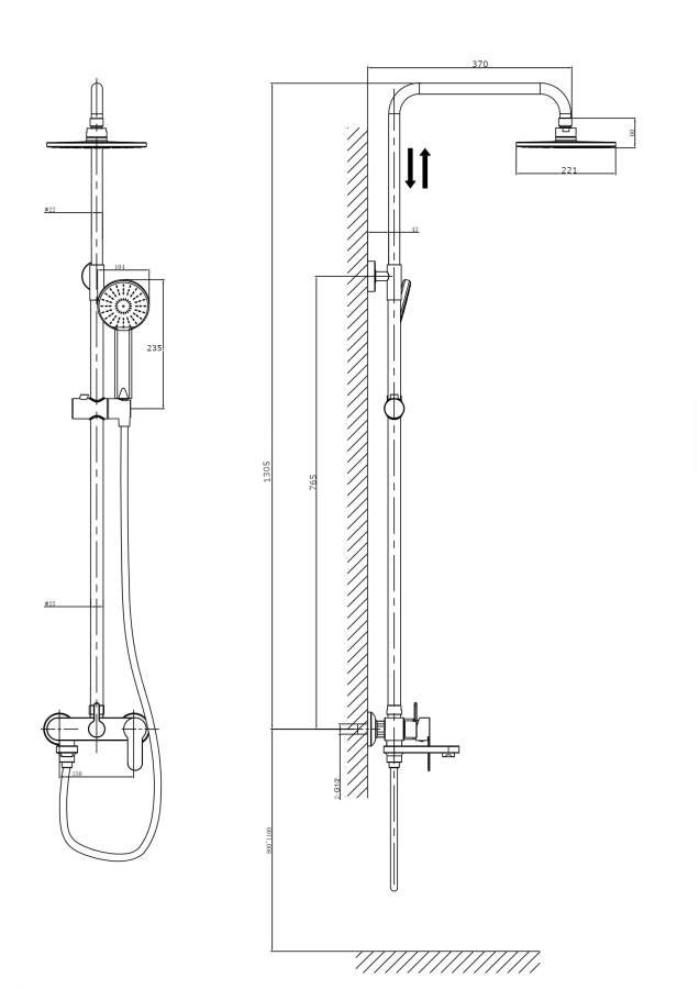 Размер верхнего душа мм.